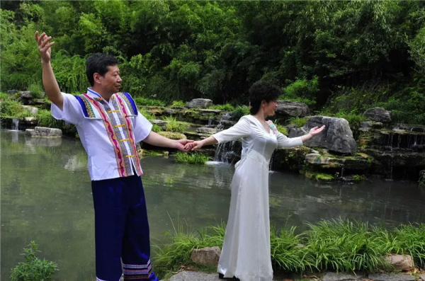 文方和丈夫参加黄龙音乐节合唱比赛获得金奖后合影