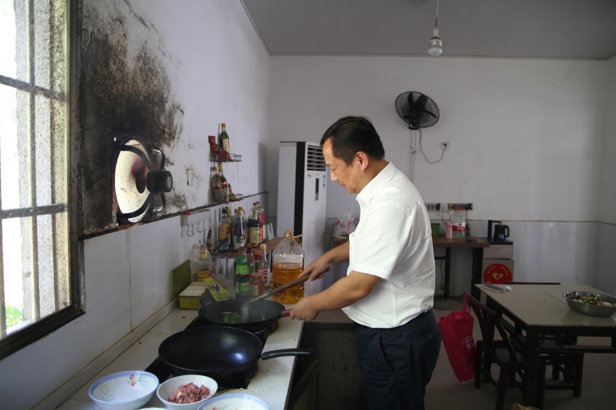 吴勇军在“板凳妈妈”家为大家准备午餐。