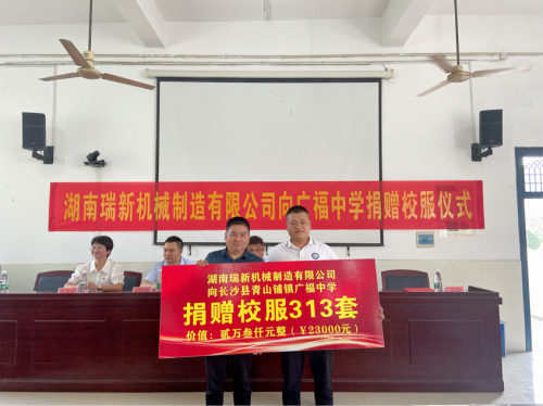 据悉,湖南瑞新机械制造有限公司自成立至今,坚持以“诚信为本、品牌经营”为宗旨,深受社会的广泛认可和一致好评。作为一家有社会责任感的企业,公司一直把关注社会公益事业、重视社会责任、做优秀企业公民当做企业文化重要组成部分,并一直以此为指导,在创造企业价值的同时,积极开展各项公益活动,取之于社会,回馈于社会。
