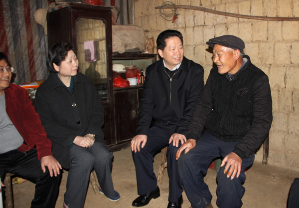 25日上午,陈求发来到邵阳县白仓镇塘代村,分别走进低保户、五保户、扶贫开发户家庭,仔细查看他们的住房、用水、谷仓等生产和生活设施,并与他们亲切交谈,了解村民们所需所盼,尤其对吃饭、补助、收入、子女教育、就业等情况问得十分仔细。