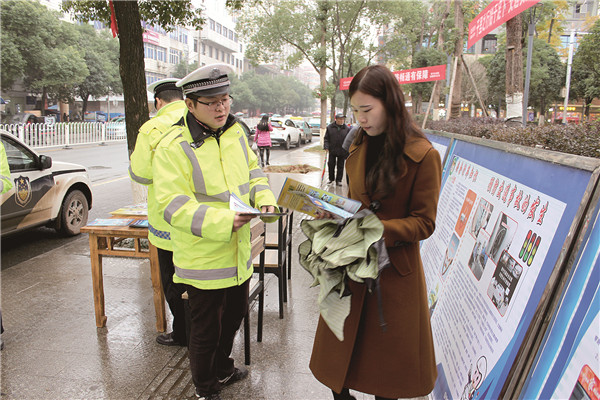 民警在进行交通安全宣传活动。