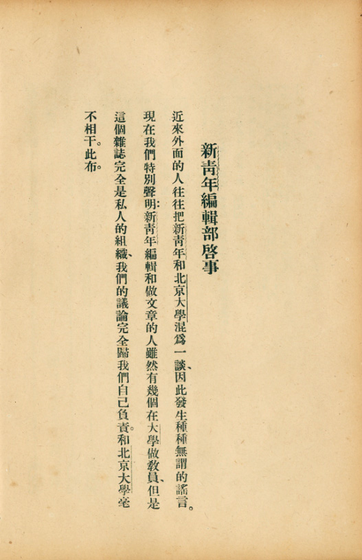 《新青年编辑部启事》。