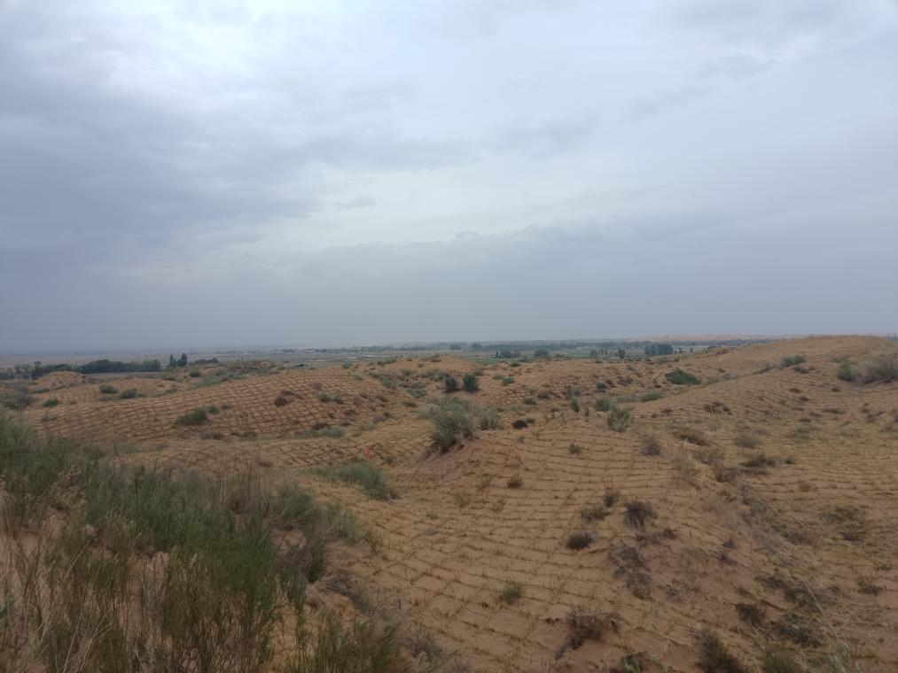 宁夏吴忠市盐池县和内蒙古鄂尔多斯市鄂托克前旗交界处的流动沙丘,今年刚刚完成治理。(孙果摄)