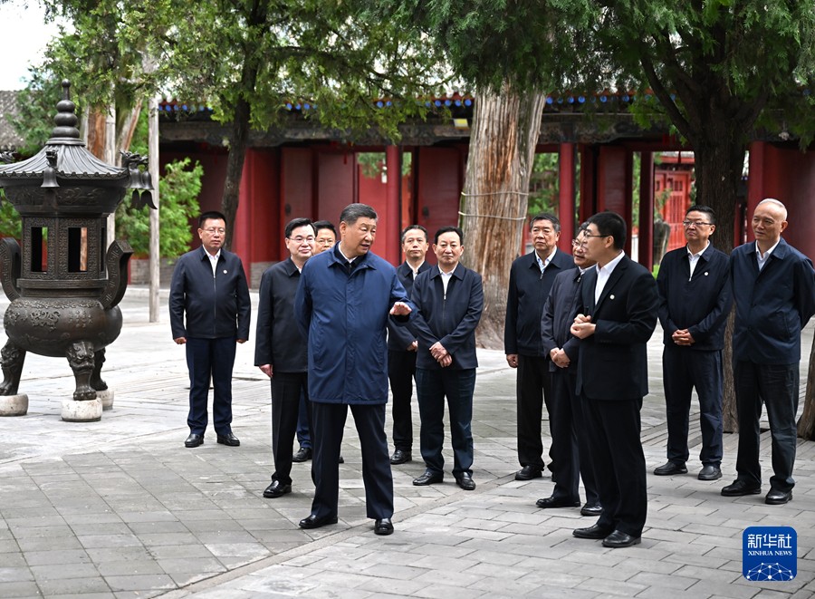 9月10日至13日,中共中央总书记、国家主席、中央军委主席习近平在甘肃考察。这是10日下午,习近平在天水市全国重点文物保护单位伏羲庙考察。新华社记者 谢环驰 摄