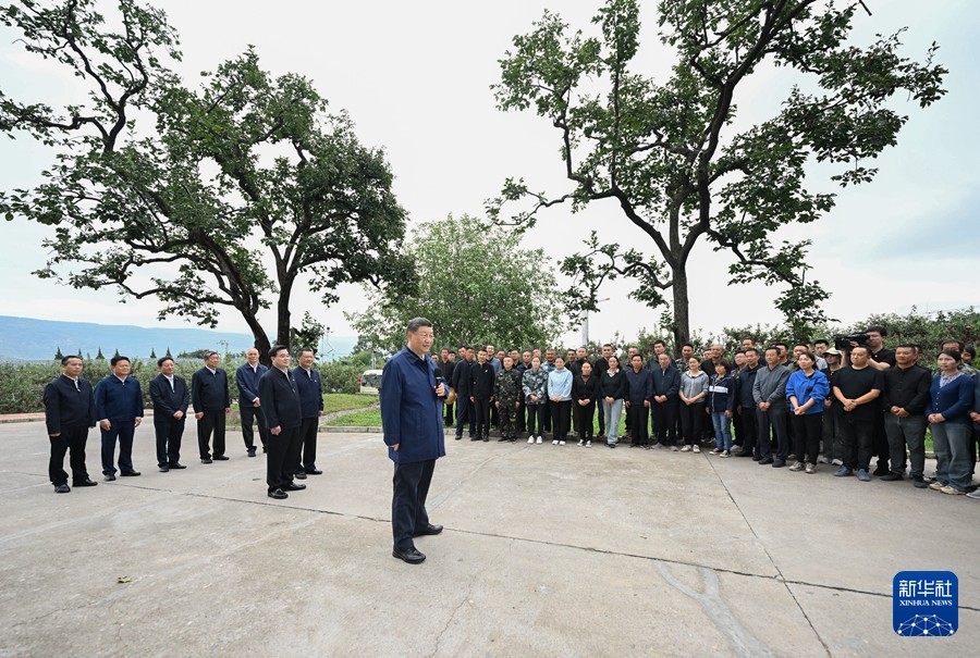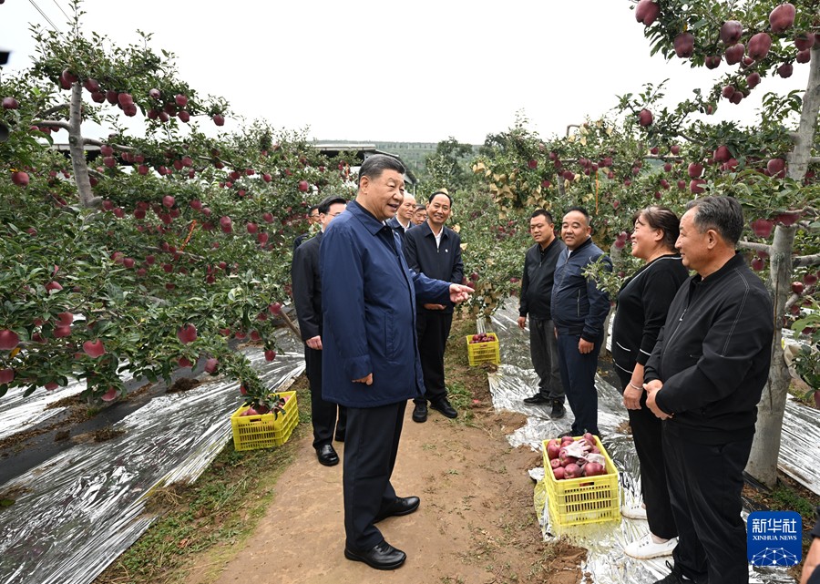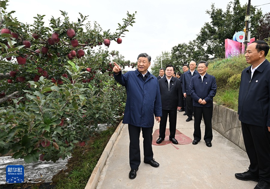 9月10日至13日,中共中央总书记、国家主席、中央军委主席习近平在甘肃考察。这是11日上午,习近平在天水市麦积区南山花牛苹果基地考察。新华社记者 谢环驰 摄