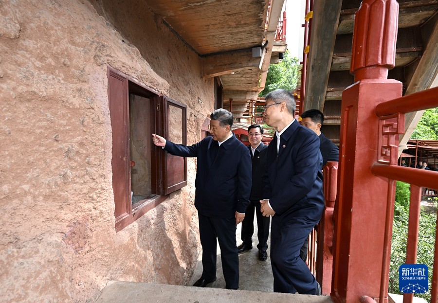 随后,习近平来到麦积山石窟,沿着栈道仔细察看距今1600多年的洞窟和雕塑、壁画,同保护修复工作人员亲切交流。习近平说,我国四大石窟是中华文明的瑰宝,都具有重要的历史价值、文化价值。他希望文物工作者赓续“莫高精神”,潜心为国护宝,为传承创新中华优秀传统文化、增强中华文化影响力作出更大贡献。