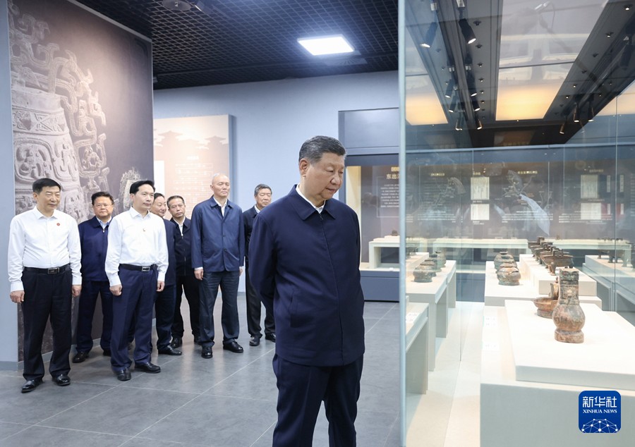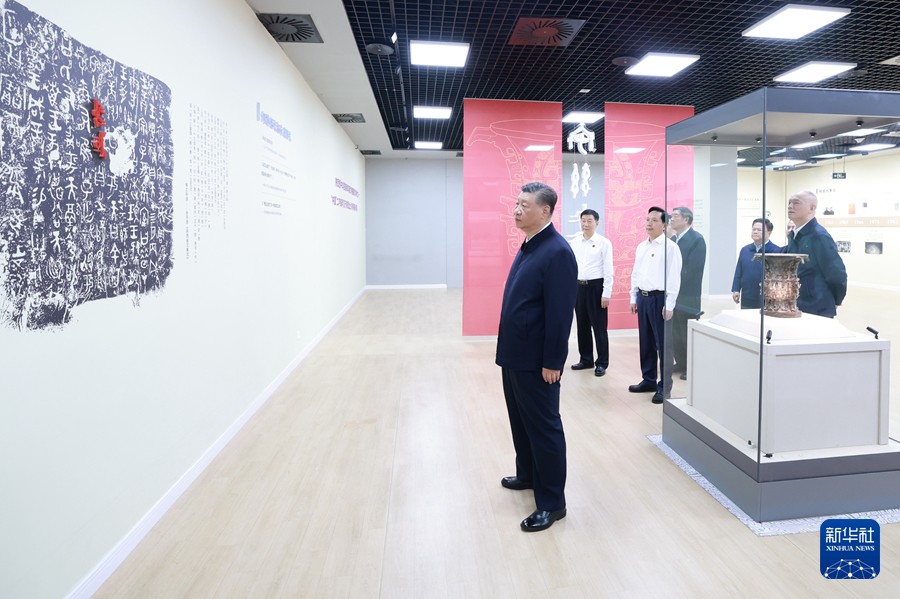 9月10日,中共中央总书记、国家主席、中央军委主席习近平在前往甘肃考察途中,来到陕西省宝鸡市参观宝鸡青铜器博物院。新华社记者 王晔 摄