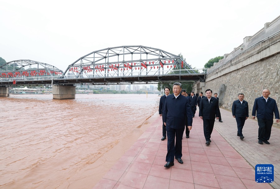 9月10日至13日,中共中央总书记、国家主席、中央军委主席习近平在甘肃考察。这是11日下午,习近平在黄河兰州中山桥段考察。新华社记者 王晔 摄