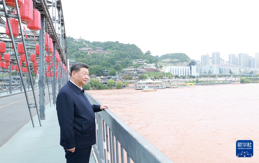 9月10日至13日,中共中央总书记、国家主席、中央军委主席习近平在甘肃考察。这是11日下午,习近平在兰州中山桥上了解黄河生态保护情况。新华社记者 王晔 摄