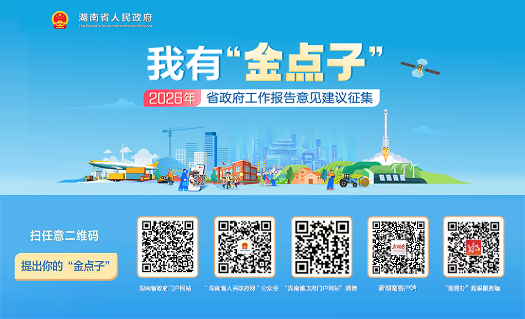 民之所望,施政所向。12月10日,湖南省政府门户网站联合多家媒体和全省政府网站、政务新媒体以及“湘易办”超级服务端,启动“我有‘金点子’——2026年省政府工作报告意见建议征集”活动。即日起至2026年湖南省两会召开前,诚邀广大网民踊跃建言献策,共同为谋划新一年省政府工作贡献智慧与力量。