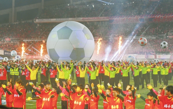 2025年12月21日晚,株洲市体育中心,湘超联赛赛前文艺表演点燃现场火热气氛。17周内98场赛事联动2000余场文旅活动,2025湘超联赛吸引241万多人次观赛,带动文旅消费近137亿元,树起“体育+文旅”融合发展新标杆。华声在线全媒体记者 郭立亮 摄华声在线全媒体记者 邓晶琎 黄晗 龙文泱 黄煌 刘瀚潞