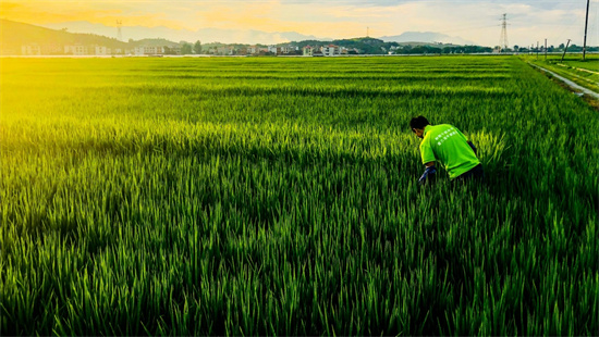 隆平高科水稻科研人员在试验田开展工作。受访单位供图