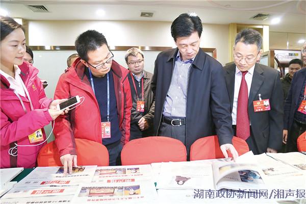 蔡振红饶有兴趣地翻阅湘声报两会特刊。 湘声报记者 彭世松/摄