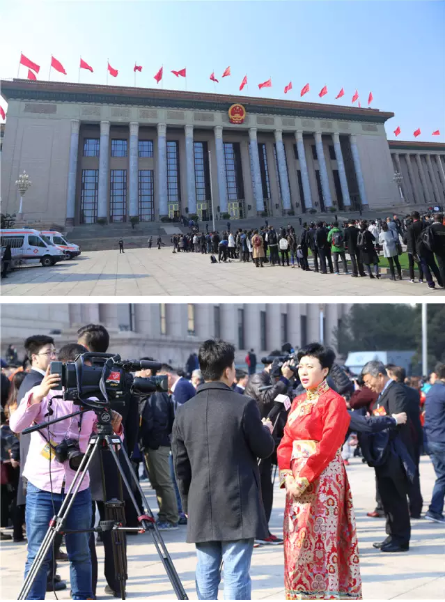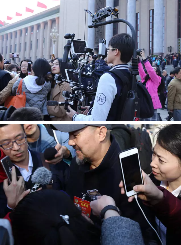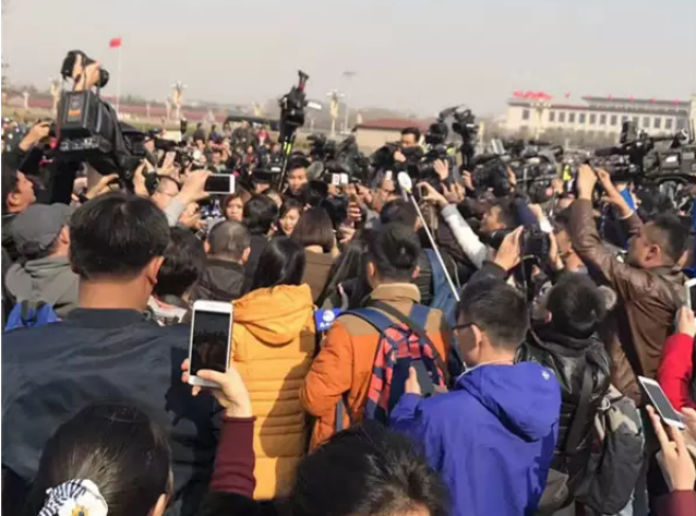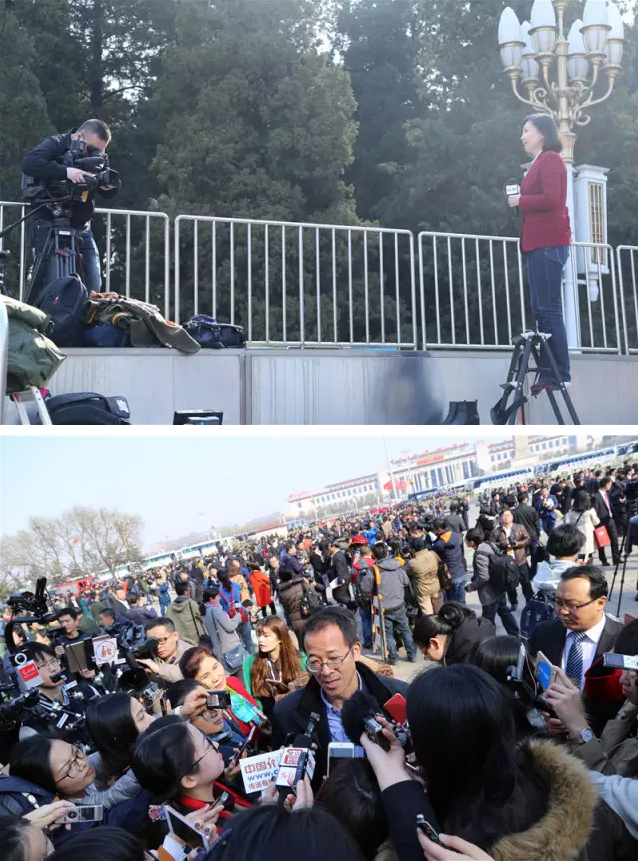 人民大会堂前,镜头、话筒、录音笔绵延成一道独特的风景……