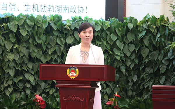 湖南省政协常委、常德市人民政府副市长、致公党常德市委主委杨成英,以“迎老乡回家乡,共建新湖南”为题,作大会发言:
