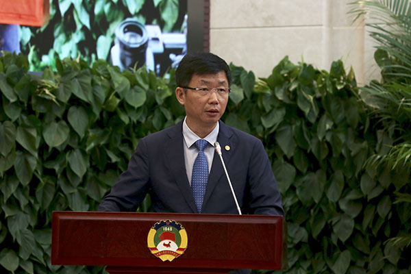 湖南省政协委员、港澳台侨和外事委员会副主任、中国民族贸易促进会党组书记、常务副会长蓝军,以“关于‘促进开放崛起,建设开放强省’的几点建议”为题,作大会发言: