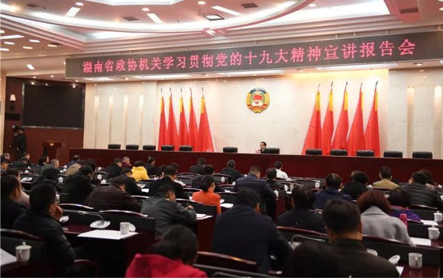 省政协把学习贯彻党的十九大精神作为头等大事来抓,十九大闭幕后,省政协党组、机关党组坚决贯彻落实中央和省委关于学习贯彻党的十九大精神的决策部署,迅速兴起了学习宣传贯彻党的十九大精神的热潮。省政协主席李微微多次强调,全省各级政协组织和广大政协委员,要把学习宣传、贯彻落实十九大精神作为当前和今后一段时期最紧迫、最关键、最重要的工作,广泛宣传,不断增进各界共识,以十九大精神为指导,谋划好今后五年的政协工作。省政协党组、机关党组及时召开会议、组织中心组理论学习会进行传达学习贯彻,制定全面贯彻落实中央《决定》和省委《通知》精神的具体实施方案,组织开展大学习、大宣讲、大培训、大调研、大落实,机关召开大会,传达学习省委书记杜家毫在全省市厅级领导干部学习贯彻党的十九大精神集中轮训班专题讲座上的讲话精神,举行重温入党誓词、向党旗宣誓等活动。