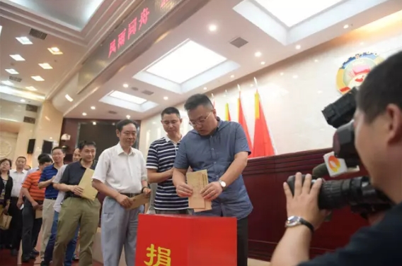 7月6日,省政协办公厅、省慈善总会组织了“风雨同舟、患难与共、情系灾区、重建家园”现场捐款活动。