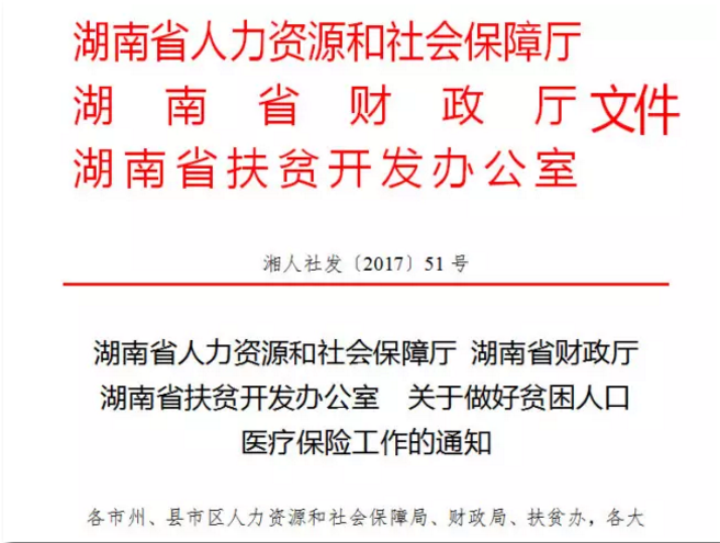 近日,湖南省人社厅、省财政厅、省扶贫办联合发出《关于做好贫困人口医疗保险工作的通知》,明确城乡居民基本医保和大病保险制度对经相关部门核准认定的贫困人口实行适当政策倾斜。相关规定自今年8月1日起执行。