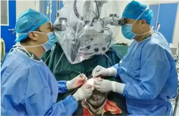 抢救团队一边给曹新宇输血,一边进行头部血管吻合手术。