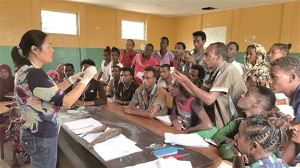 这位来自湖南省水产科学研究所的水产专家、民盟盟员,已两次到埃塞俄比亚进行水产教学援助。在2009年至2010年,她曾在津巴布韦进行教学援助。