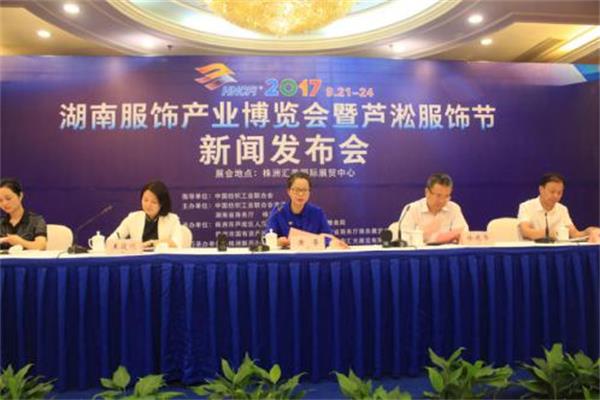 9月6日,2017湖南服饰产业博览会暨芦淞服饰节新闻发布会在长沙举行。此次服博会主题为“相聚融合·共促服饰产业新发展”,由中国纺织工业联合会指导,中国纺织工业联合会流通分会、湖南省商务厅、湖南株洲市政府联合主办。