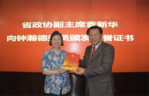 省政协副主席袁新华向钟瀚德颁发荣誉证书。
