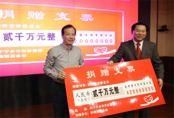 钟瀚德基金会向省慈善总会捐赠2000万元人民币。