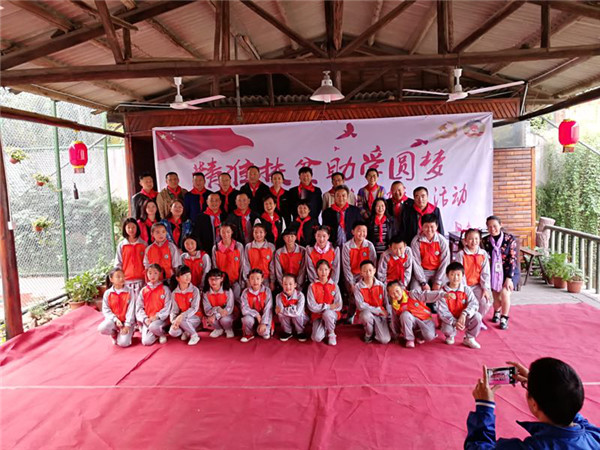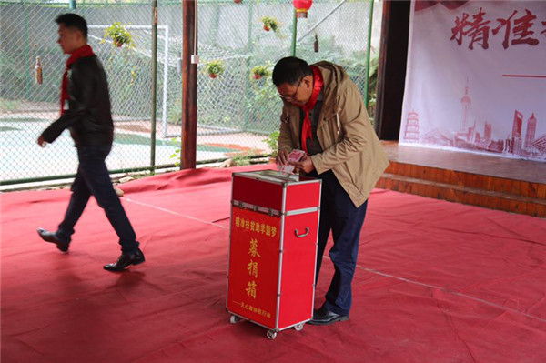 南托委员组委员现场为黎塘小学学生捐献爱心筑路资金