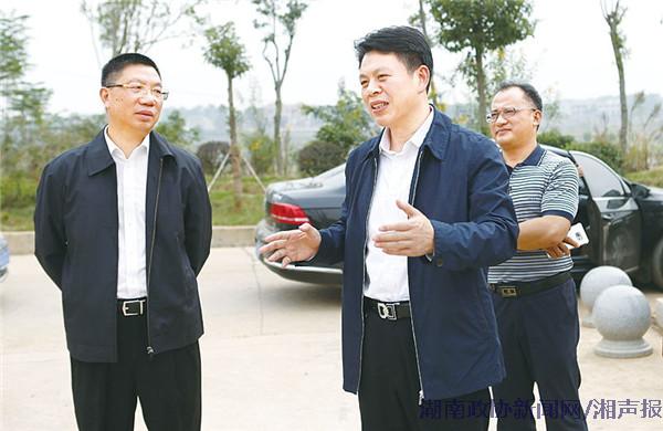 衡阳市副市长、石鼓区区委书记杨龙金(左二),区委副书记、区长刘浪(左一)在项目建设现场调研。