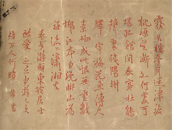 我在三绝碑前驻足良久,仔细吟哦秦词,不禁谔然发觉摩崖上所刻秦词,竟然与《淮海居士长短句》、《碎金词谱》,乃至今人龙榆生的《唐宋名家词选》、胡云翼的《宋词选》等各种版本的文字有所不同:第三句“桃源望断无寻处”中的“无寻处”,碑文是“知何处”,第五句“杜鹃声里斜阳暮”中的“斜阳暮”,碑文是“残阳树”,第九句“郴江幸自绕郴山”中的“幸自”,碑文是“本自”。为什么一首短短的《踏莎行》词,会有三处异文呢?