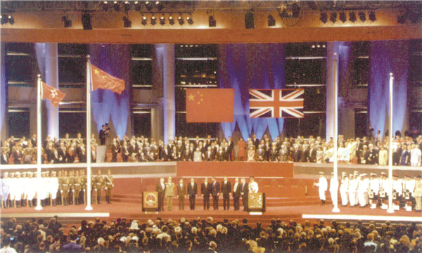 在中英两国主持的香港交接仪式上,江泽民在致词中特别指出邓小平“一国两制”创造性构想,及其对实现香港回归祖国所发挥的关键作用。