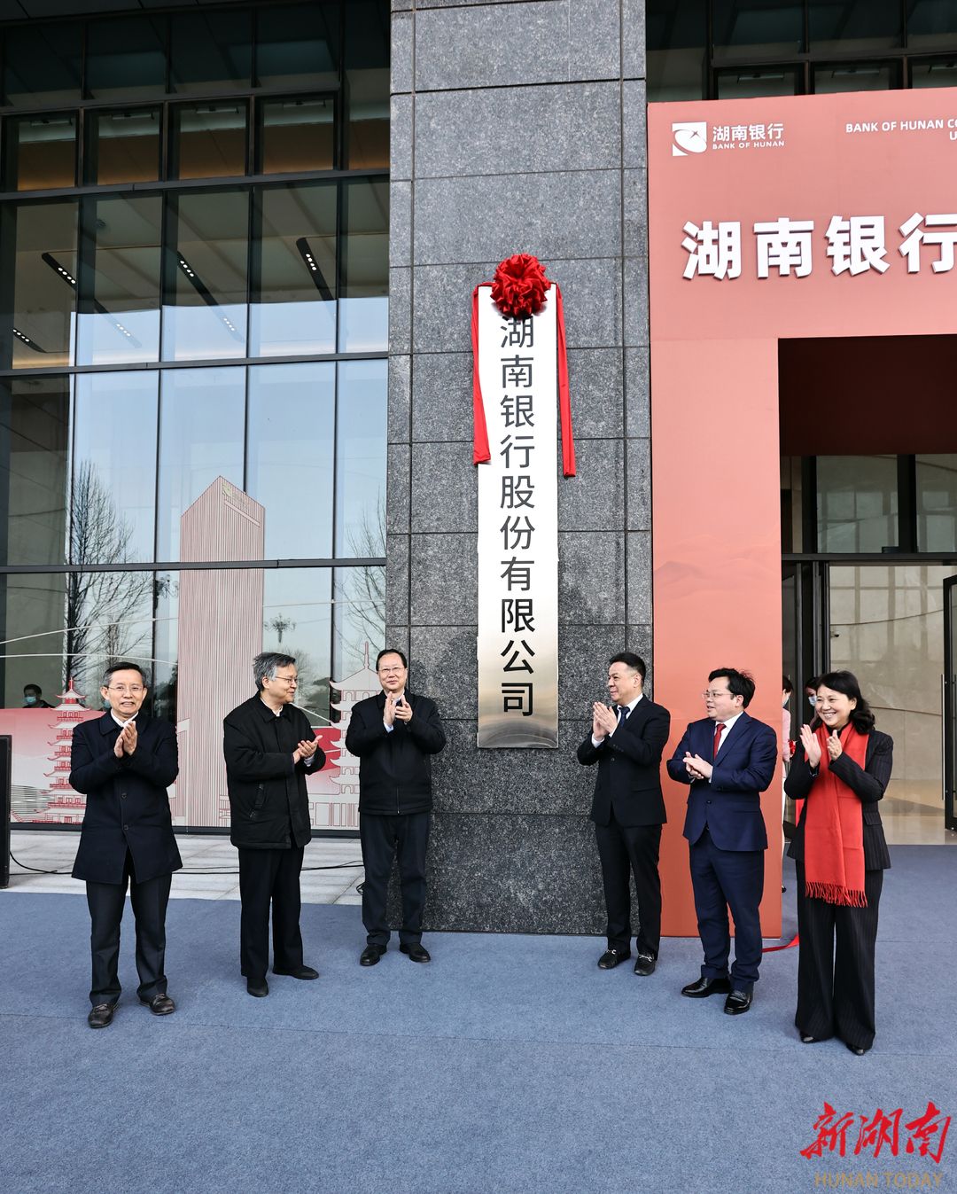 2月15日上午,省委副书记、省长毛伟明在湖南银行调研并出席揭牌仪式。图为毛伟明为湖南银行揭牌。