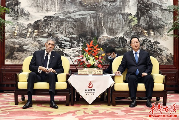 毛伟明对客人的到来表示欢迎并简要介绍湖南省情。他说,湖南是伟人故里、将帅之乡,历史悠久、人文荟萃,产业基础扎实、工业体系完整,绿色、古色、红色、金色交相辉映。当前,湖南正全面落实“三高四新”战略定位和使命任务,努力把习近平总书记为湖南擘画的宏伟蓝图变成美好现实,经济社会总体呈现大发展、快发展、好发展的良好态势。自2021年湖南与多米尼加首都大区缔结友好省区关系以来,双方高层往来日益密切、经贸合作持续深化、交流领域不断拓展,特别是两地携手抗击疫情,诠释了守望相助的深厚情谊。2022年,湖南与多米尼加双边贸易额快速增长,前景看好。毛伟明说,相知无远近,万里尚为邻。希望以梅希亚总书记此次访湘为契机,进一步推动两地在现代农业、文化旅游、医疗卫生、媒体交流等领域合作,实现优势互补、互利共赢,为推动中多关系不断向前发展作出新贡献。