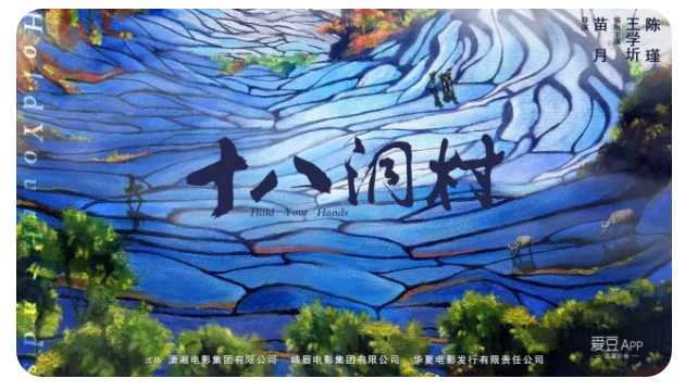 《十八洞村》发布的首款概念海报,以湘西水田为主视觉,蓝色的主色调渲染得画面如同幻境。