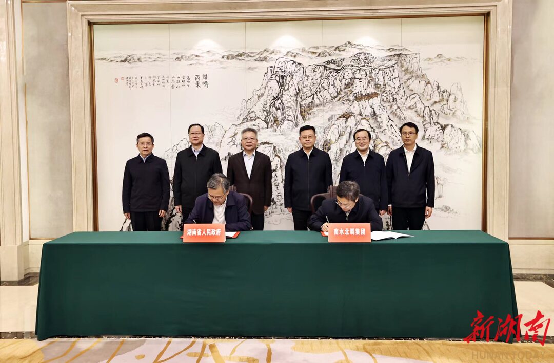 毛伟明感谢南水北调集团长期以来对湖南的大力支持,并介绍全省经济社会发展情况。他说,湖南97.6%的国土面积位于长江流域,水情是最大的省情。近年来,湖南牢记“守护好一江碧水”殷殷嘱托,积极抢抓长江经济带发展等重大历史机遇,统筹推进水灾害、水资源、水生态、水环境治理,全省147个国控断面水质优良率98.6%,位居中部第一,新能源和可再生能源装机容量占全省电源总装机的57.9%,水利事业高质量发展取得明显成效。毛伟明说,南水北调集团是国家水网建设的国家队、主力军,技术、资金、人才优势明显。希望以此次签约为契机,进一步深化双方在现代水网建设、生态环境改善、绿色低碳转型发展等领域全方位合作,携手开展洞庭湖疏浚和重大水利枢纽工程建设,共同做好水文章,守护好河湖安澜。湖南将进一步优化营商环境,让南水北调集团在湘放心投资、舒心经营、安心发展。