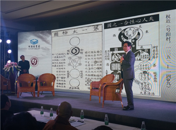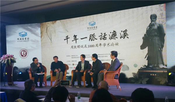 在作为首场纪念活动的学术论坛上,湖南省濂溪学研究会会长张京华、深圳大学文学院哲学系教授王立新、湖南省湖湘文化研究会会长周秋光、韩国高丽大学哲学研究所教授田炳郁同台论道,围绕周敦颐的生平、思想、历史地位及当代价值进行了多视角和多维度阐述。