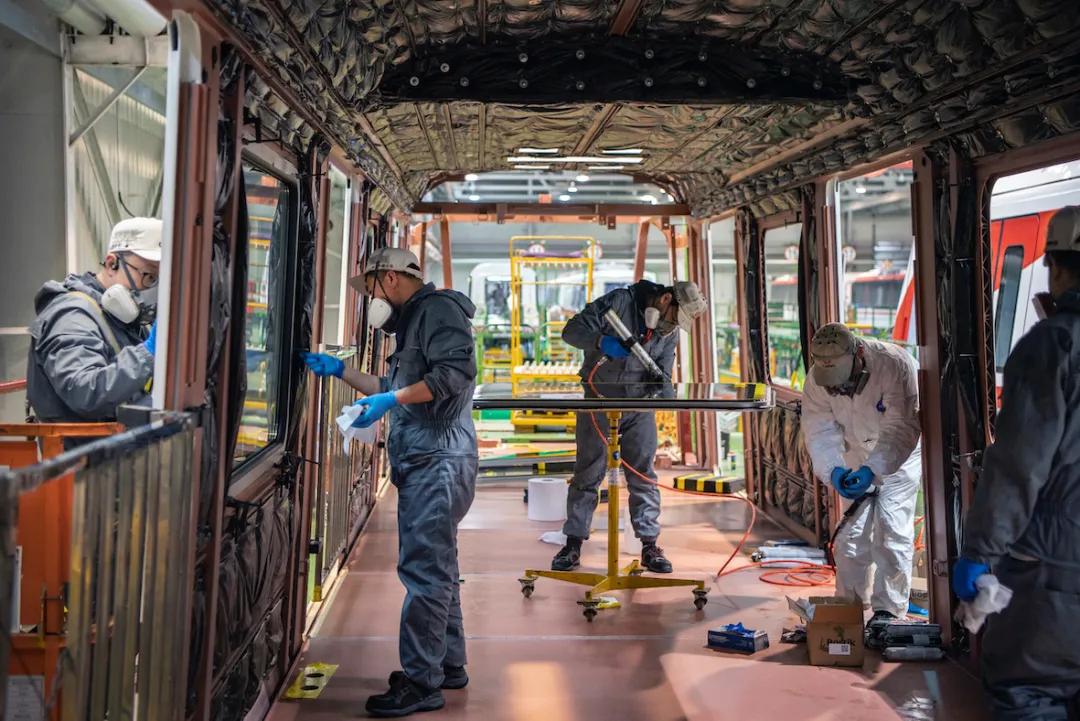 (中车株机城轨事业部总成车间,技术人员在加紧组装城轨车辆,赶制国内外客户订单。湖南日报全媒体记者 李健 摄)
