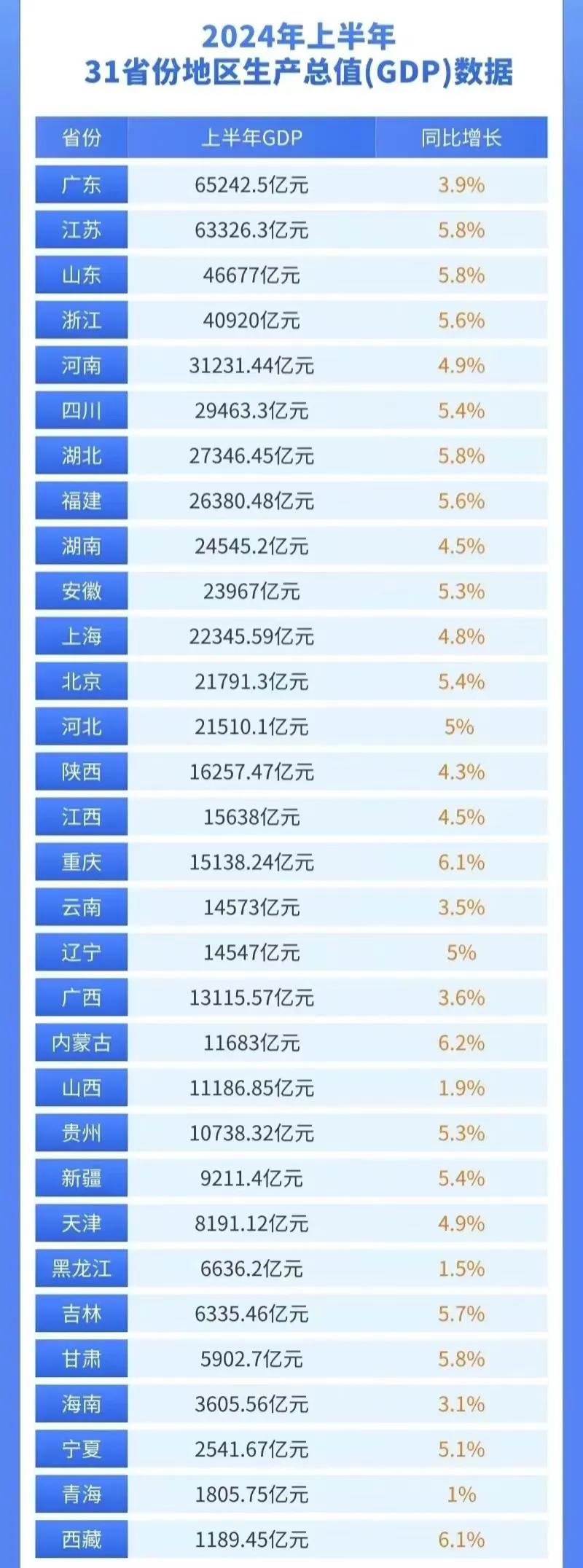 此后,各省份陆续发布各自的上半年经济运行情况。仔细研究31个省份的经济表现,还是值得说道说道。