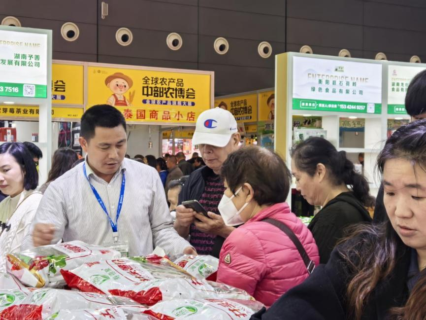 据了解,本届中国中部(湖南)农业博览会共吸引了22个外省、市、区组团参展,15个国家近65家境外企业,参展企业共3575家,产品达3万余种,其中,衡阳县共有15家农业企业参展。展会现场,衡阳农特产品展销馆人气爆棚,衡阳县农特产品大受欢迎,不少农特产品甚至卖到断货。据统计,展会期间衡阳县企业共展出54个农特产品,销售额100多万元,意向签约近千万元。