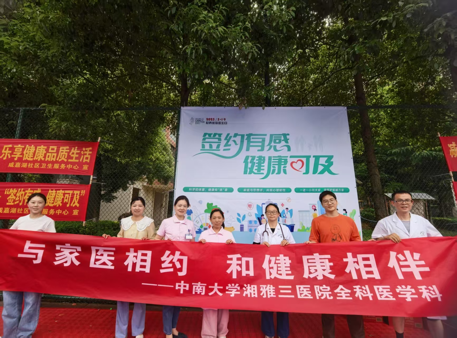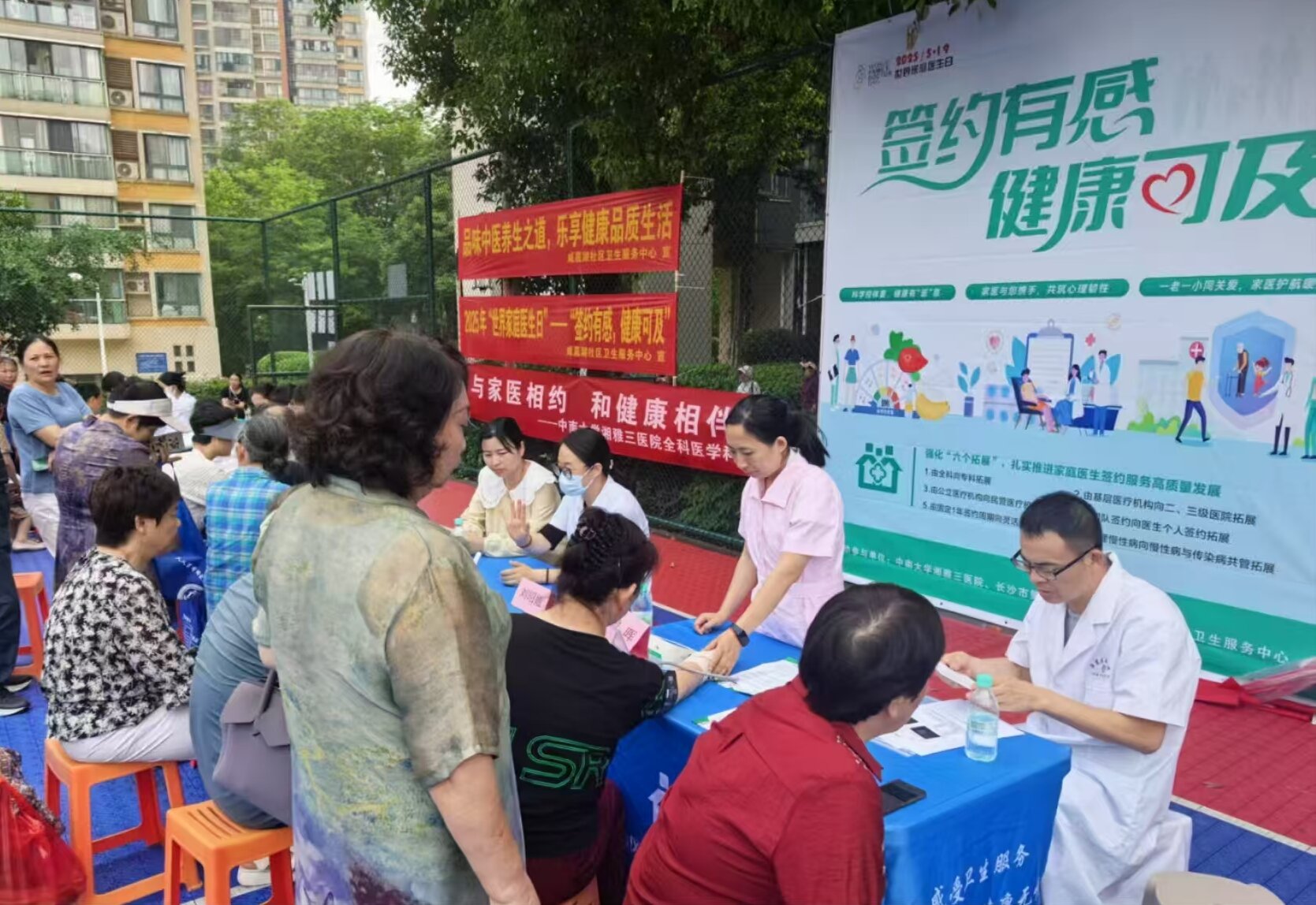 2025年5月19日是第15个“世界家庭医生日”。在今年的5月19日,中南大学湘雅三医院全科医学科联合长沙市第四医院、咸嘉湖街道社区卫生服务中心在高鑫麓城小区开展了以“签约家医·享受健康人生”为主题的义诊及科普活动,旨在强化家庭医生签约服务概念,普及高血压防治和中医药健康文化知识,提升居民健康意识,推动健康服务高质量发展。