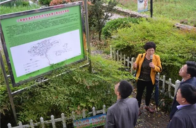 环溪村主任周爱莲向参观者介绍村里污水处理工程。这样接待外来参观者,成了她的工作常态,许多农村建设的经验和做法,给了许多人以启迪。
