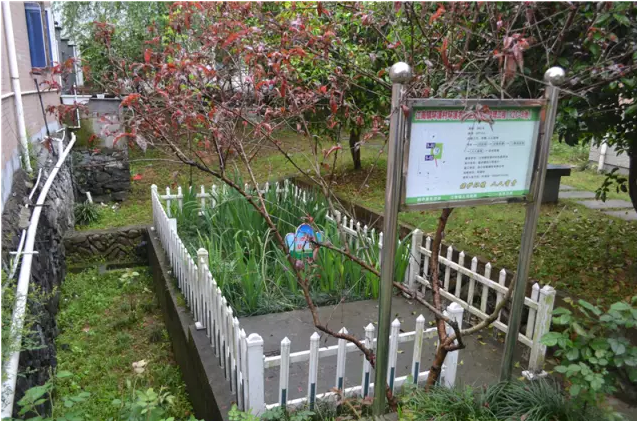 村民屋旁的一个生活污水处理池。这个并不起眼的小池里,用生态方式处理生活污水,现在水清了,味没了,村绿了。
