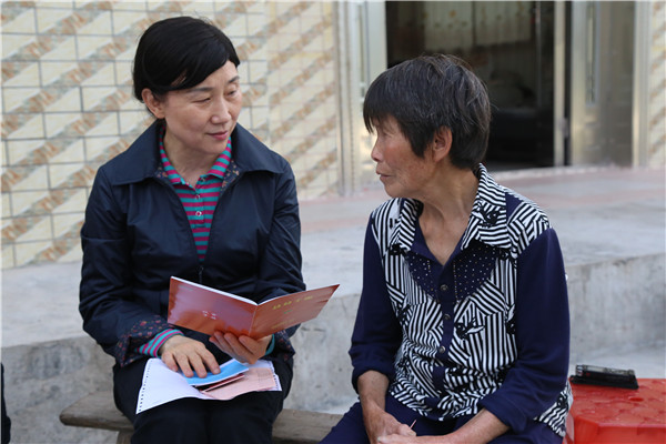 李微微向卿良凤逐条核对扶贫手册中的记录