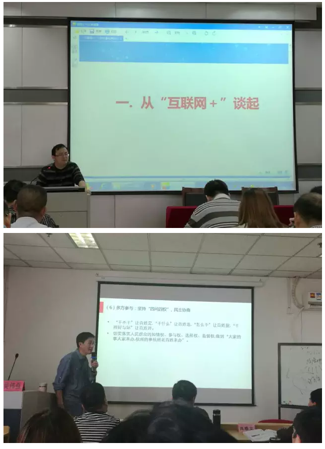杭州改革发展研究院副院长、城市发展研究中心主任吴伟强教授,以杭州城市定位的变迁历史为主线,通过分享杭州G20峰会的保障工作,向大家讲授了城市定位、城市形象设计等知识。