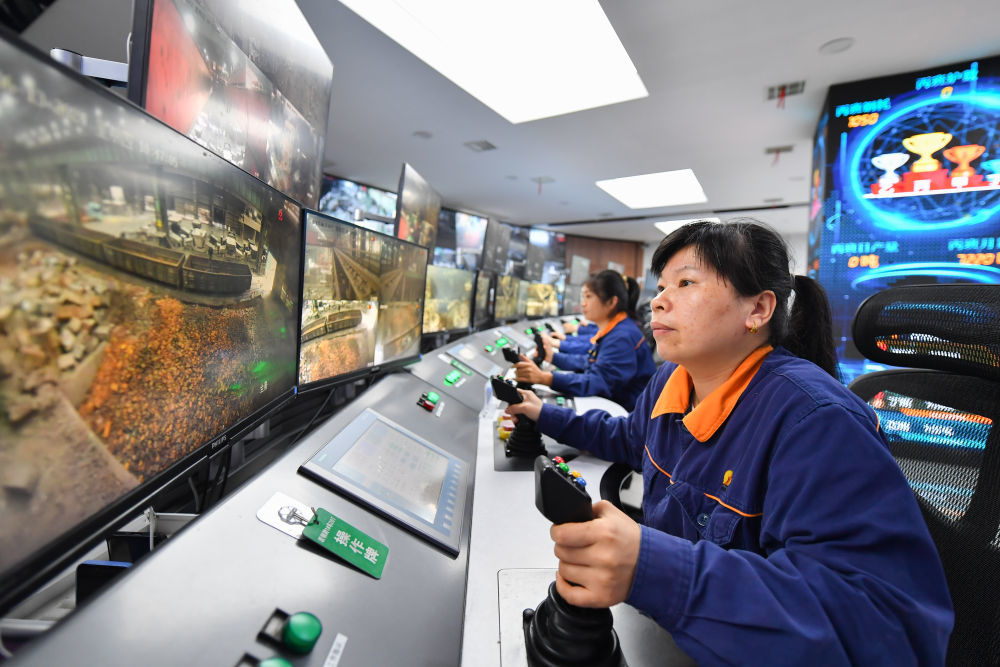 (湘潭钢铁集团有限公司五米宽厚板厂智慧中心,工作人员在远程操作加热炉设备。图源新华社)