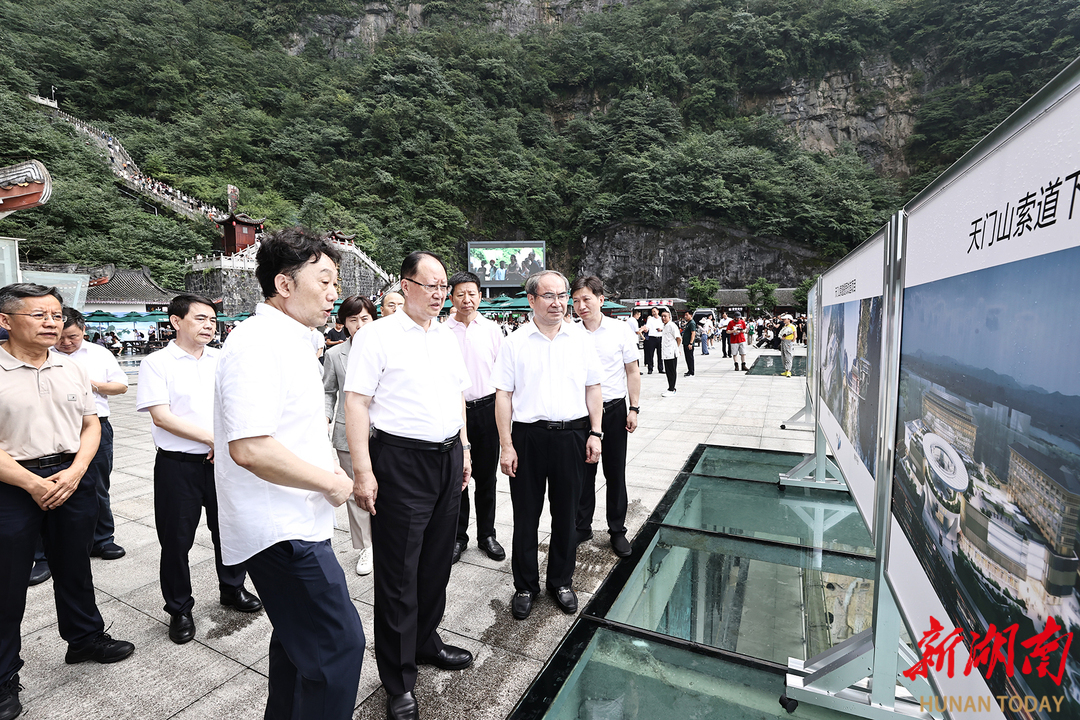 调研中,毛伟明强调,要丰富优质文旅产品新供给。以游客个性化需求为牵引,加强数智化赋能,打造更多全时段、多维度、品质化的旅游场景,开发更多“一眼心动、一步沉浸、一触难忘”的消费场景。要做足两道“融合命题”文章。将湖湘文化、红色基因、民族风情、生态山水等元素融入旅游产品,推动旅游与文化、艺术、科技等跨界融合,抢占文旅发展新赛道。要打造旅游公共服务新标杆。加快完善路网、住宿及景区硬件设施等,加强旅游服务质量监管,提升入境游客旅行便利度,以良好服务赢得游客口碑。要创新旅游宣传推介新模式。将宣传推介与文艺创作结合起来,通过“一首歌”“一部剧”“一场赛”等群众喜闻乐见的文旅体产品传播湖南故事,不断提高张家界的品牌影响力和美誉度。当前正值暑期旅游旺季,要全力做好景区安全防范工作,加强客运索道、游乐设施等日常检修,落细落实人员疏导等应急预案,确保游客玩得安心舒心。