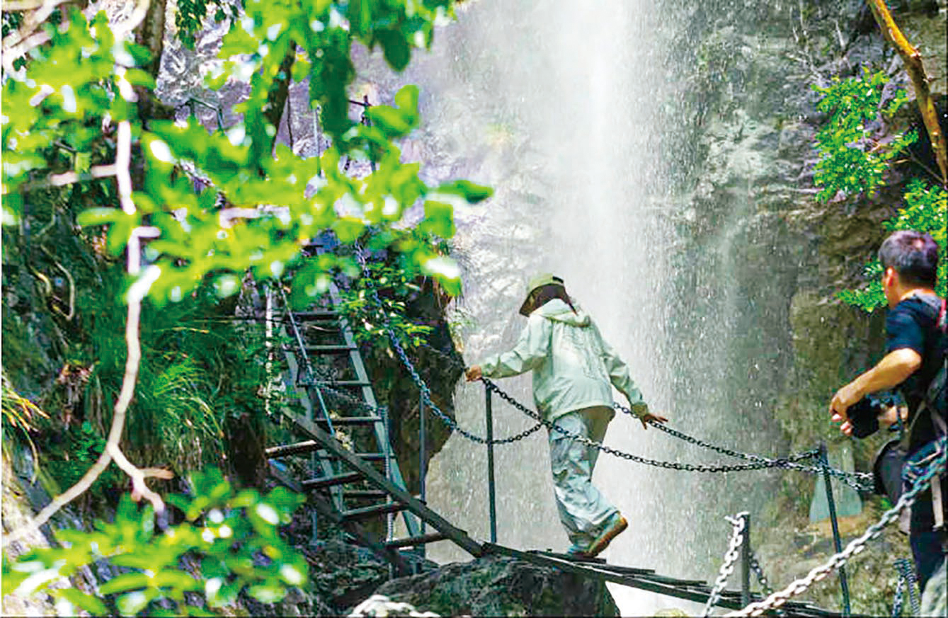 青龙峡谷内峭壁如刀削斧劈,千丈崖壁直插云霄,蔽日的浓荫与穿谷而过的山风带来丝丝凉意。