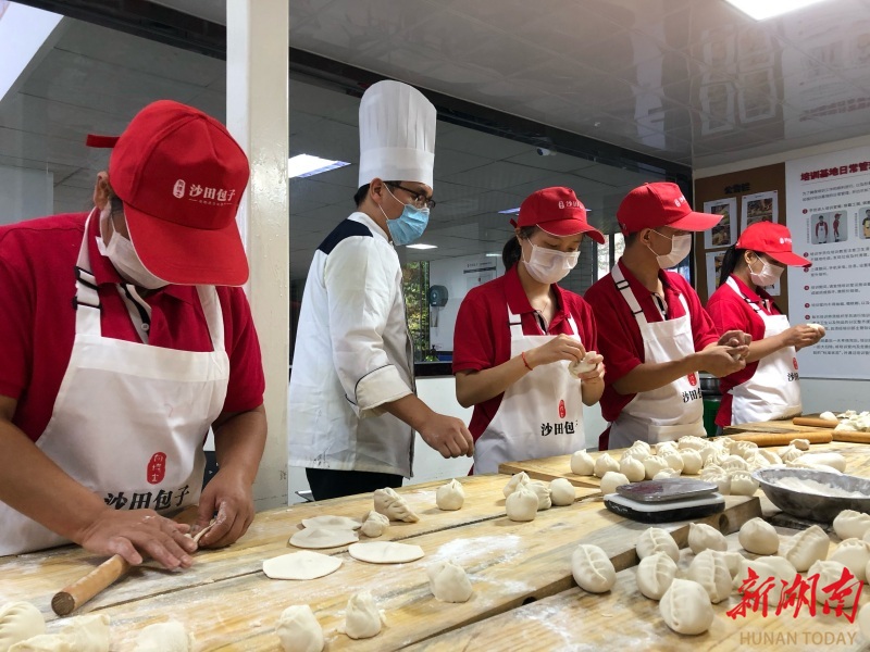 我听了一惊,包子生意做这么大,得花费多大的心思哟。我问他,每天这么大的量,哪些人呷咯。他说,主要是学校和企业,大伙都把沙田包子当作了自己的早餐。另外,还有三百来家加盟店,每天定时定点配送成品、馅料、面粉等。
