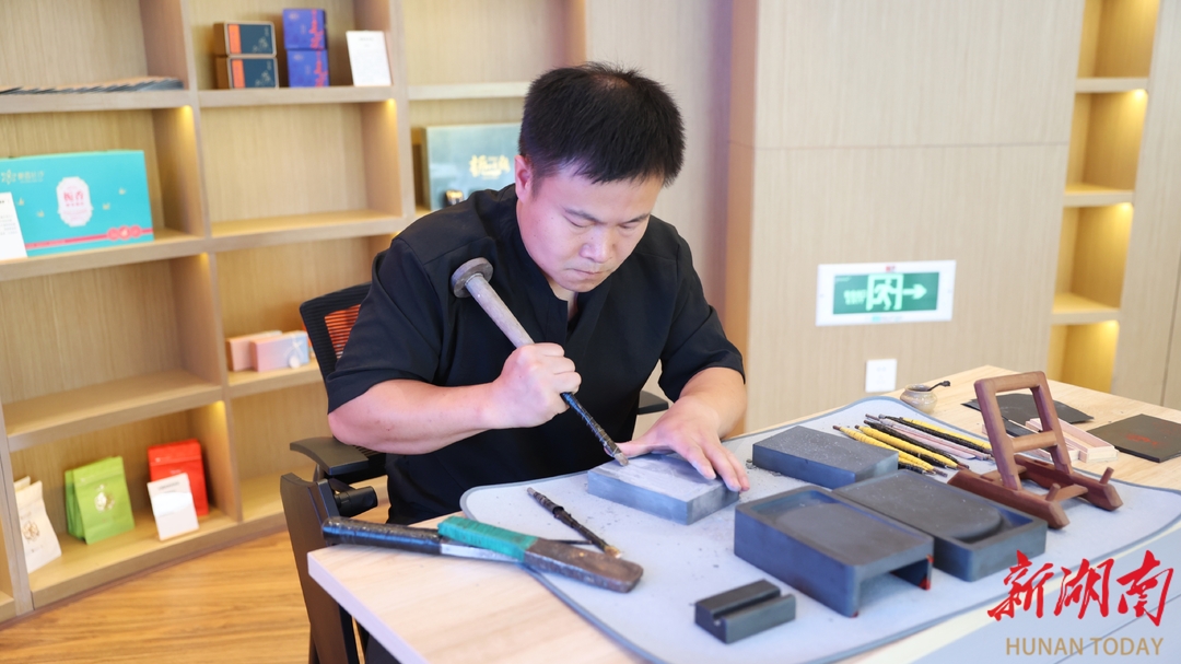 现在,他把主要精力放在了书堂欧阳询文化的嫁接上,将书堂八景置入砚台中,表达地方文化生生不息的向往。